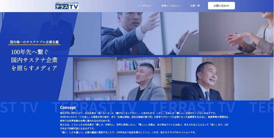 「テラスTV」は日本で唯一の『サステナブル企業名鑑』を標榜する新たなWEBメディアです。